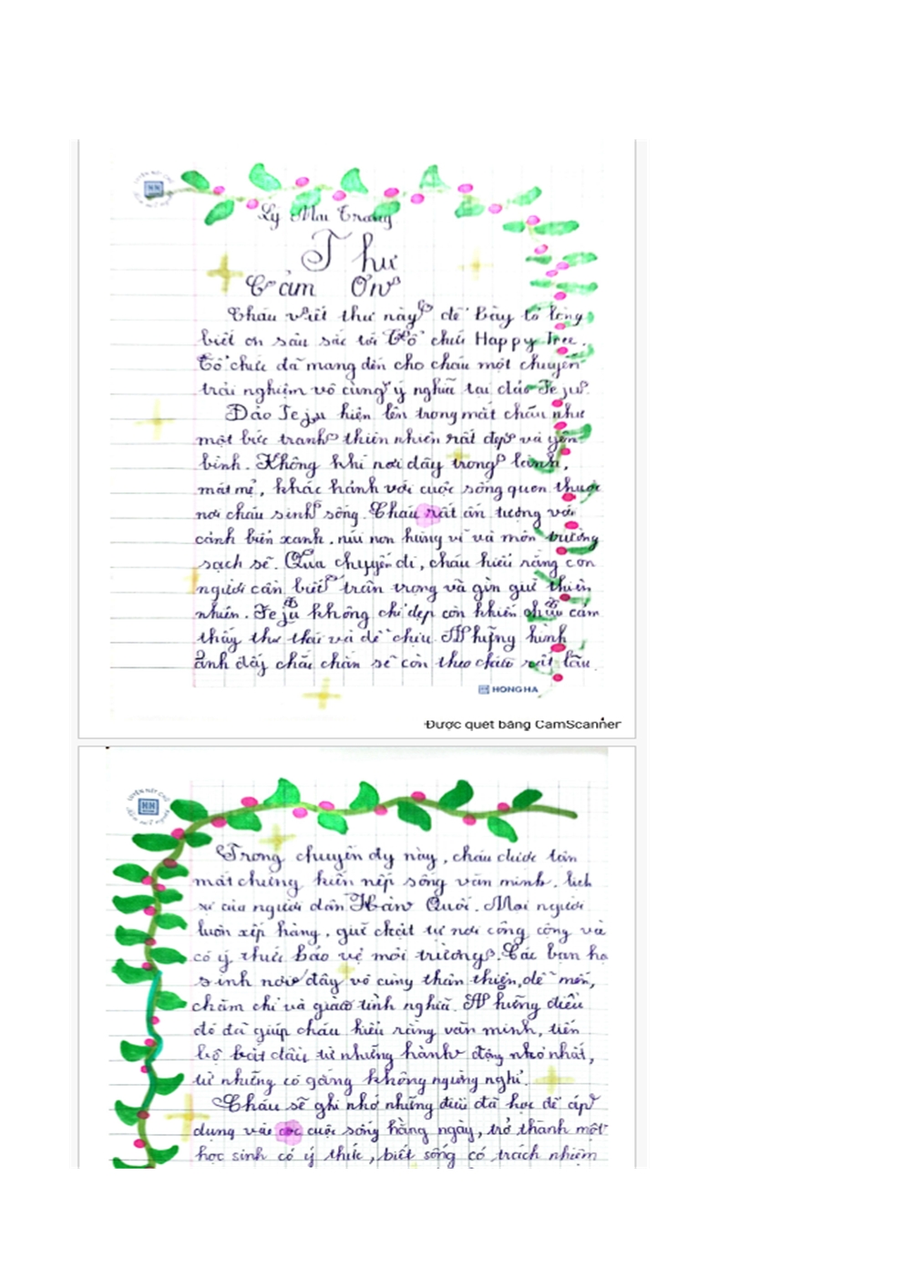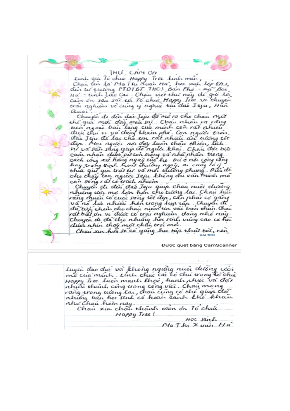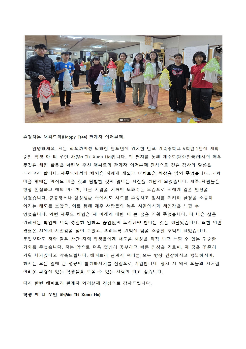 베트남 박하읍(몽족) 반포민속기숙중학교 제주 초청학생 감사 편지1