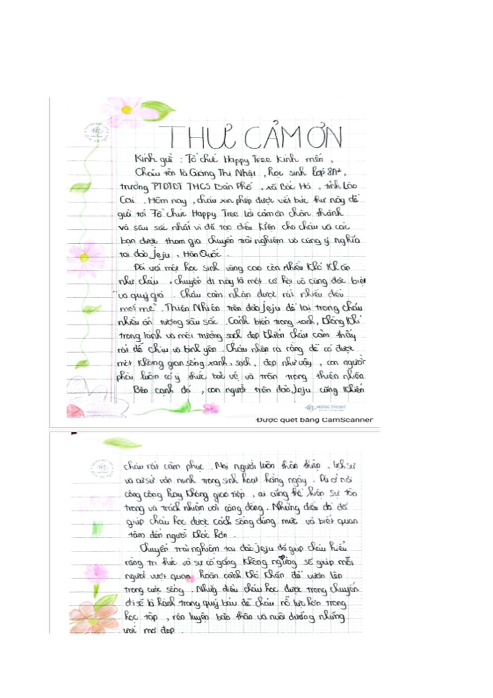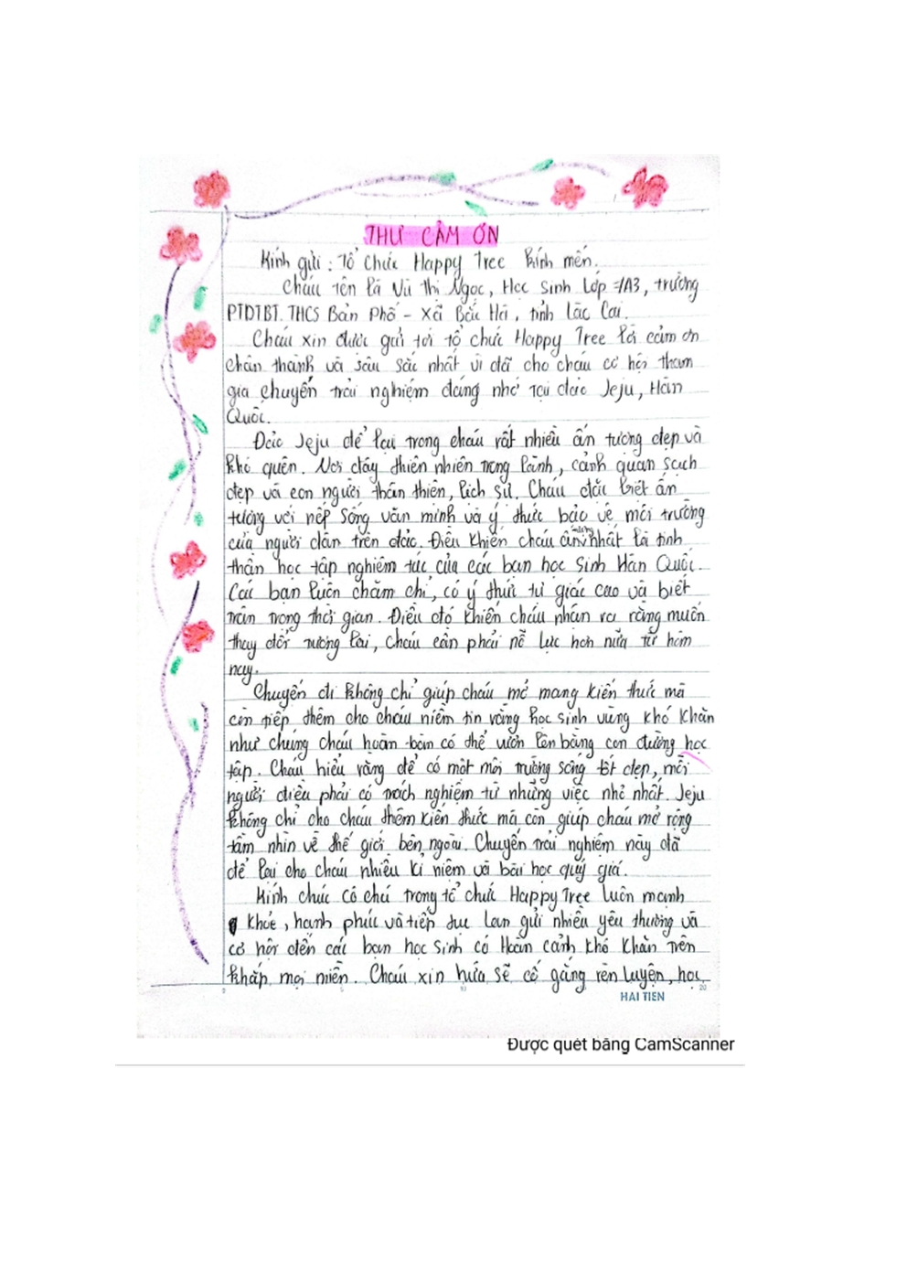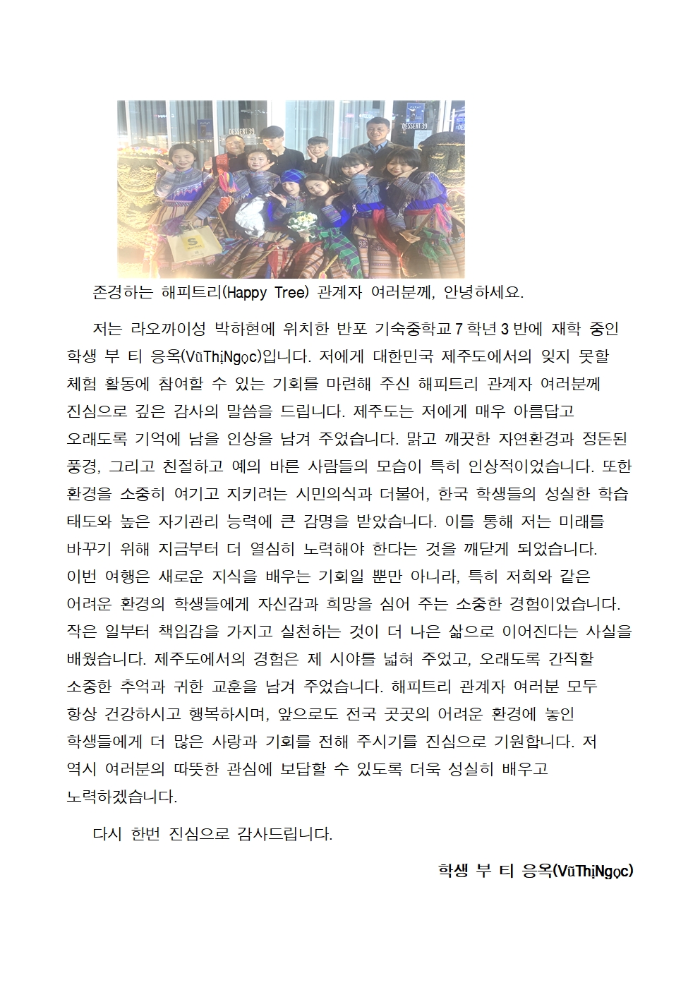 베트남 박하읍(몽족) 반포민속기숙중학교 제주 초청학생 감사 편지3