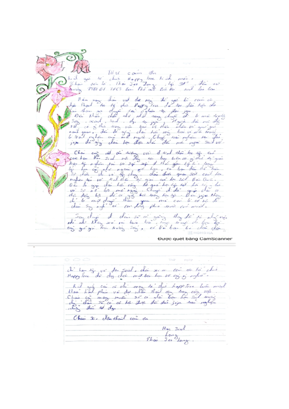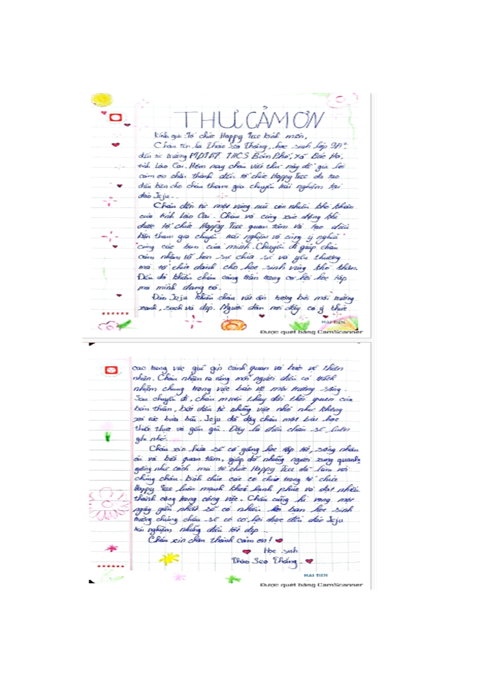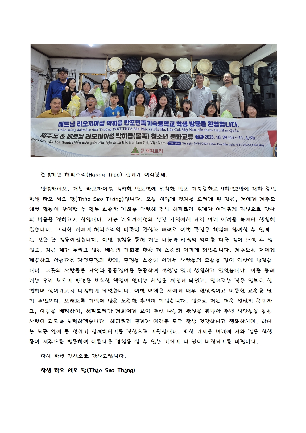 베트남 박하읍(몽족) 반포민속기숙중학교 제주 초청학생 감사 편지4