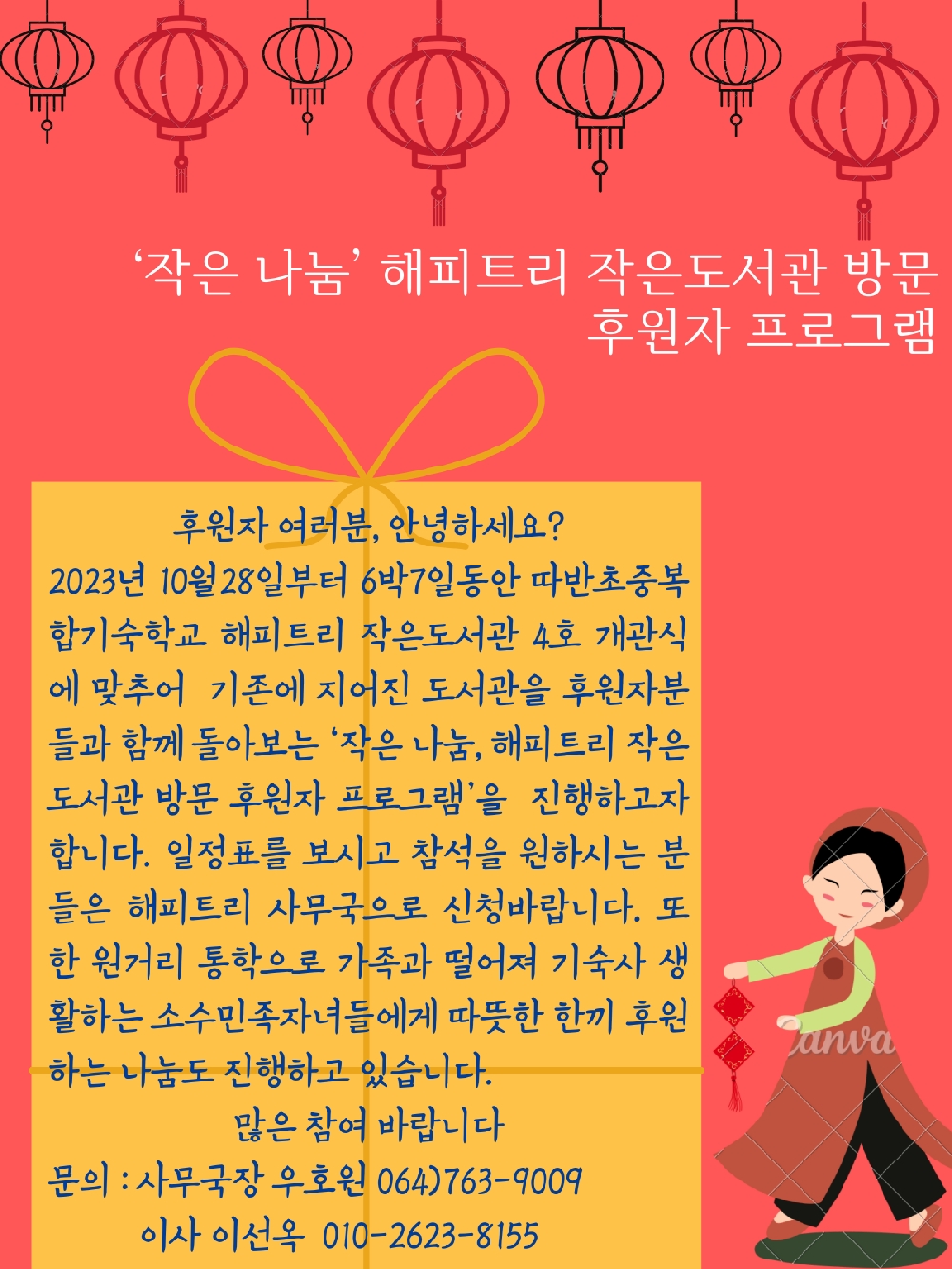 '작은 나눔, 해피트리 작은도서관 방문 후원자 동행 프로그램' 참가신청 안내