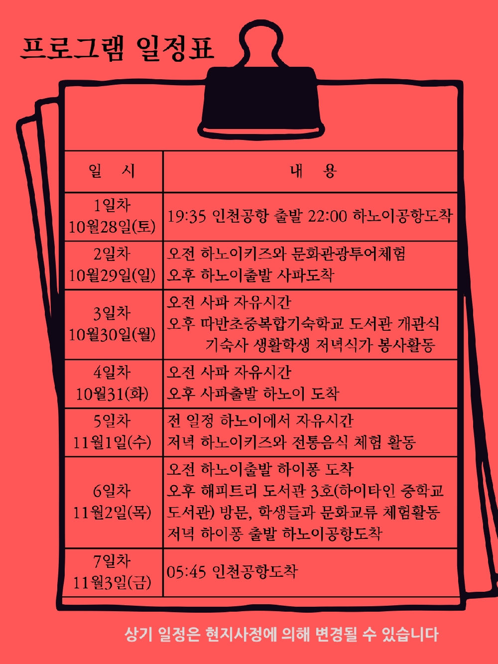 2023년 10월 28일부터 6박7일간
