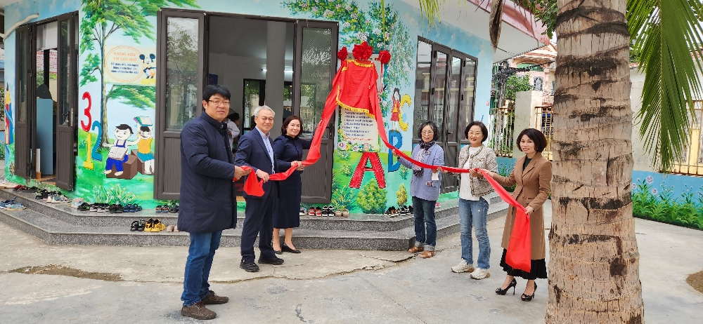 1. 일시: 2022년 12월 8일(목) 2. 장소: 베트남 하이타인 초등학교 3. 참석: 참석: 송형록(해피트리 이사장), 한금순(해피트리 상임이사), 이선옥(해피트리 이사), 김상호(해피트리 베트남 현지 코디네이터), 부 티 낌 번(하이타인 초등학교 교장), 응우엔 찌 냔(즈엉 낀 군 인민위원회부위원장), 응우엔 찌 린(즈엉 낀 군 교육훈련방 실장), 찐 반 하이(하이 타인 동 인민위원회 위원장), 쩐 티 번 아인(하이 타인 동 인민위원회 부원장), 응오 꾸앙 탕(하이 타인 동 인민위원회 부원장) 및 교사 4. 내용: - 2021년 준공하였으나 코로나-19 상황으로 해피트리에서 개관식에 참석 못하고 개관하여 사용 중임 - 현판식 진행 - 도서관에서 독서수업을 진행하고 있는 현장 점검 - 도서 비치 현황 점검 결과 양호함을 확인 |