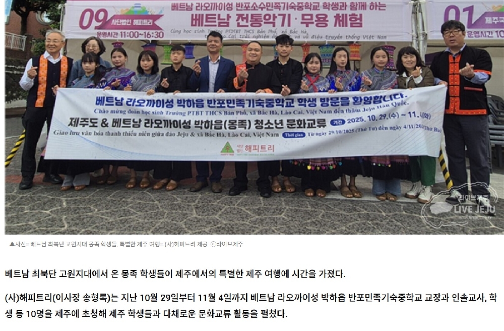 베트남 최북단 몽족 학생들, 제주에서 문화의 다리를 놓다